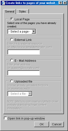 The "New Link" dialog will appear.