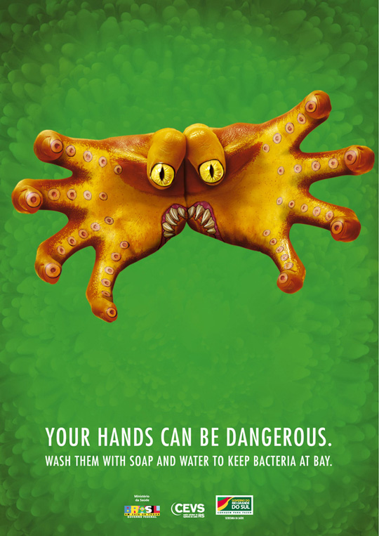 All public awareness ads have something in common: they all call the viewer to some kind of action such as a conversion of belief, a change in lifestyle, or a financial contribution. Thus, they need to be compelling, persuasive, striking, and memorable. The thirty-three images we’ve collected here do a pretty good job. They are visually powerful, they impart a sense of urgency, and they leave an impact that will cause the viewer to ponder the message even when the ad is no longer in site. To see each poster in full size, click on the name of the sponsor organization below the title.