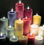 Slowly melt 1 pound of paraffin wax in a double boiler on low to medium heat and stir continuously: for a little color, throw in a couple of broken crayons. As you stir the melting wax, have a friend or family member prepare candle molds by rubbing the insides of empty milk containers, orange concentrate containers, or even gelatin molds thoroughly with vegetable oil. You can get more creative with the molds or purchase special molds at candle shops, but these are good for beginners. Make wicks by taking a ball of thick cotton string and cutting pieces that are 3 inches longer than the length of each candle mold. When the wax is melted, dip all but two inches of your wick into the wax and place them 1 inch apart on wax paper. Make sure each wick is a straight line. Now add 20 drops of your favorite essential oil to the melted wax and stir. Slowly pour wax into the mold leaving a ? inch of space at the top edge. Insert wicks into each mold, wrap the unwaxed portion to a pencil, place the pencil horizontally across the top of each mold, and make sure the wick hangs horizontally. Let the candle sit for at least 24 hours and top off the candle to keep it from settling or sinking in the center. When candles have completely hardened, turn the mold upside down and tap the bottom of the mold. If the candle still doesn't come out, immerse the mold in a pan of hot water for a few seconds (this will soften the outside of the candle) and the candle should slide out easily.